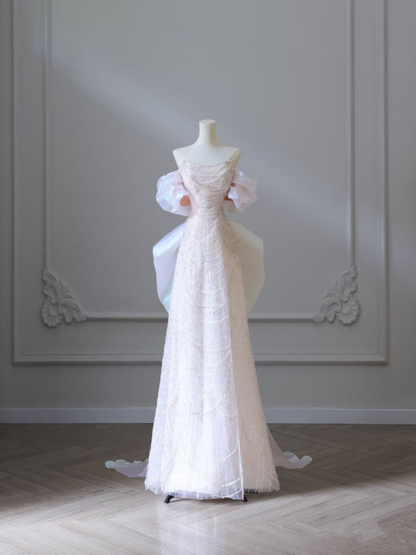A Line Off The Shoulder Sequin Pink Floor Length Evening Dress Prom Dresses SD1647