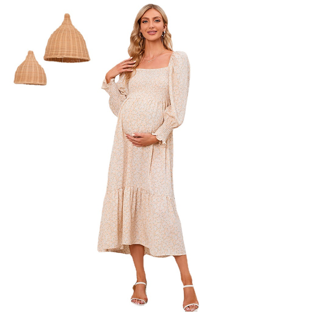 2025 New Spring Pregnant Woman Chiffon Dress Small Broken Floral Dress Maternity