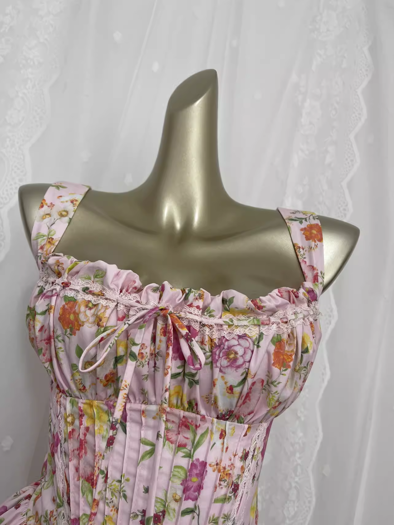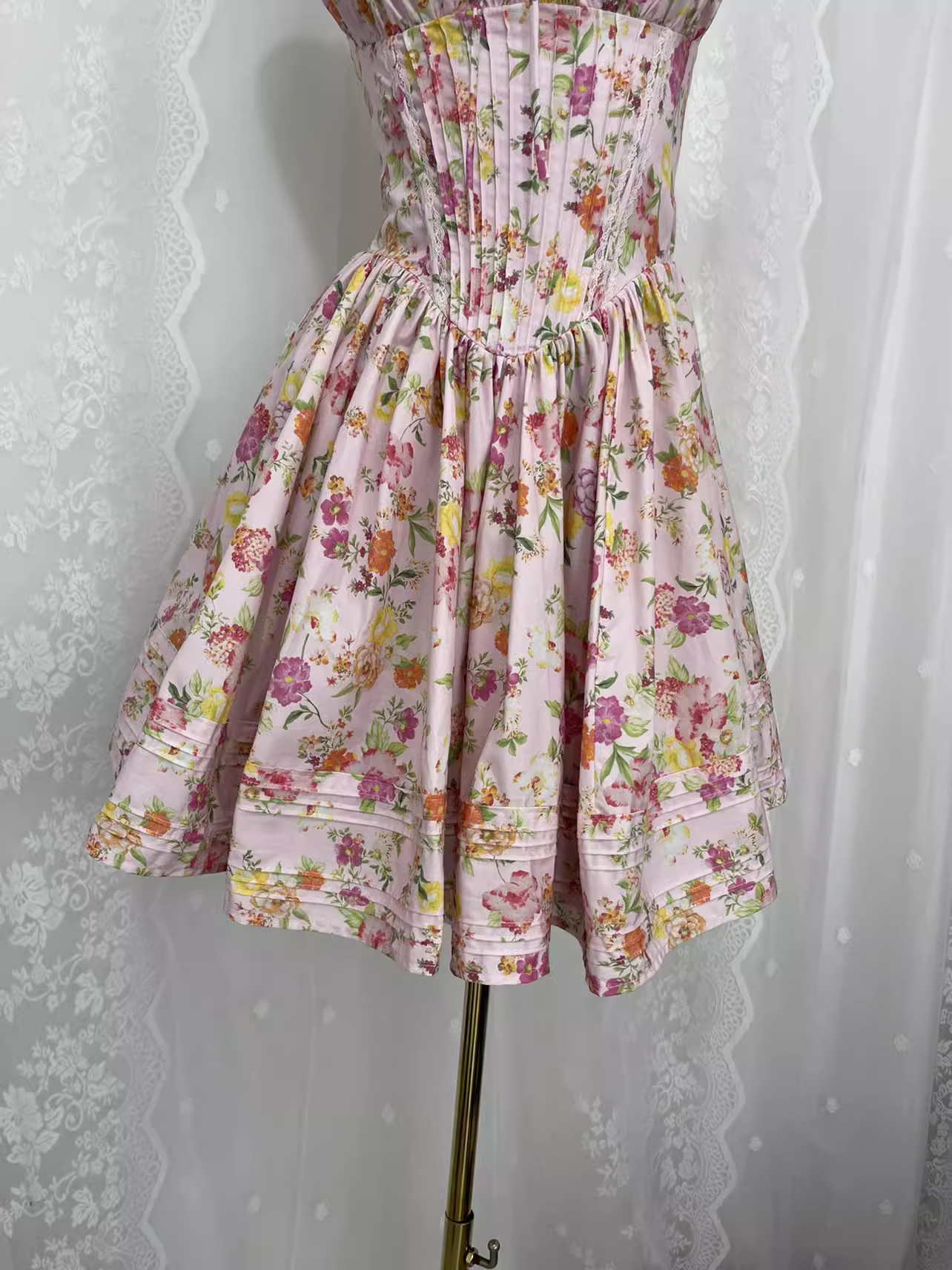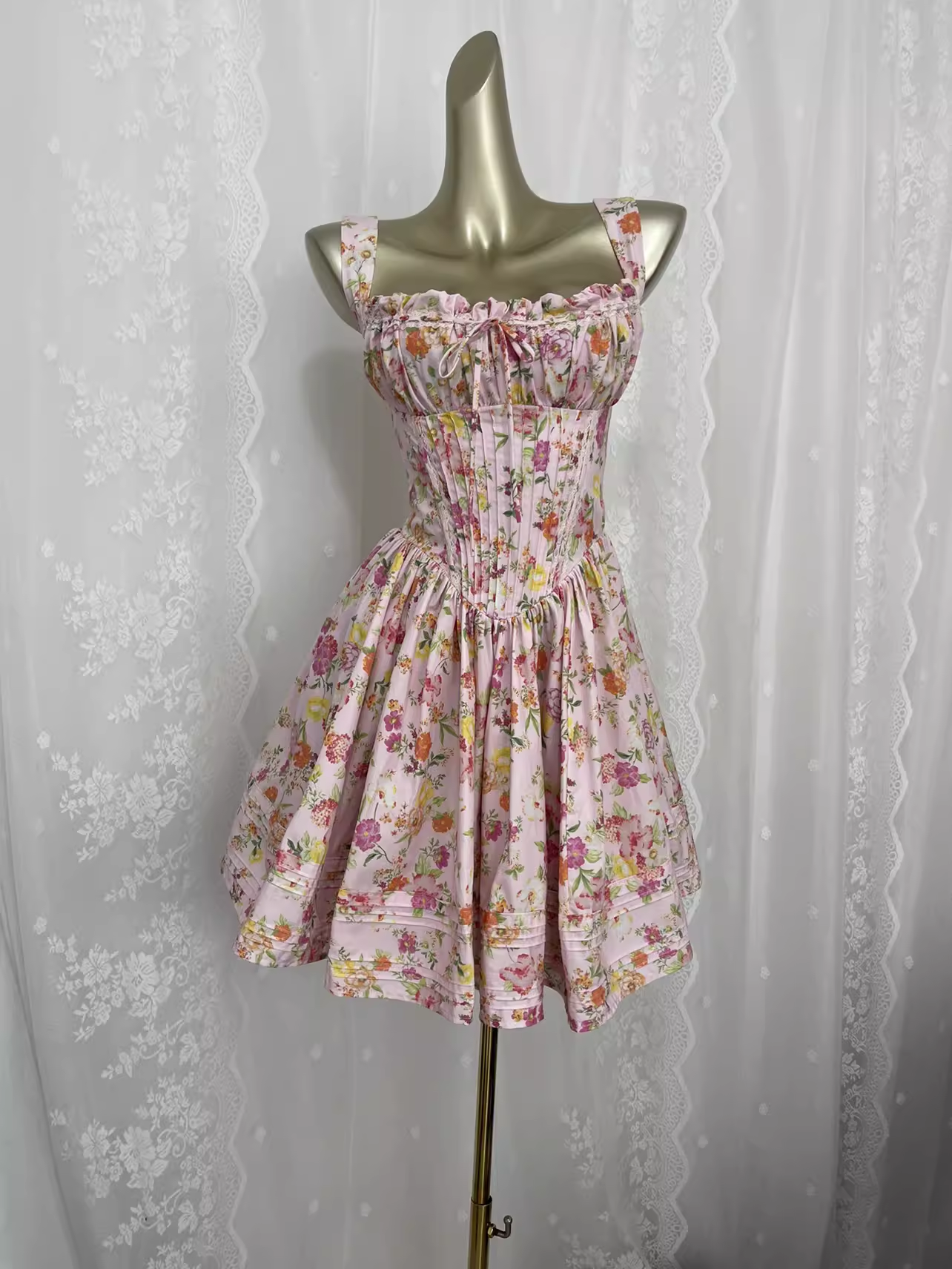 A line Straps Floral Travel Vacation Floral Beach Dress Short Birthday Dress SD0029
