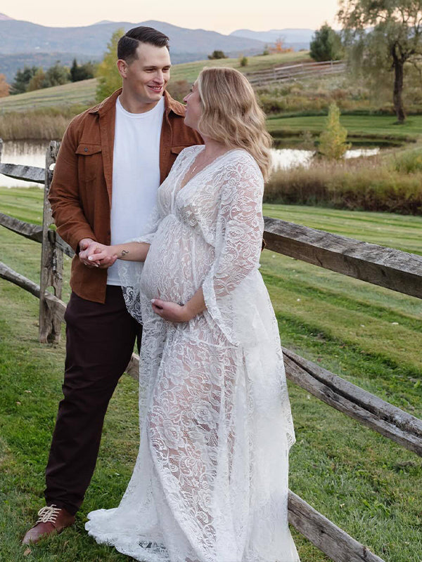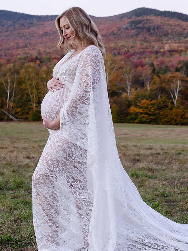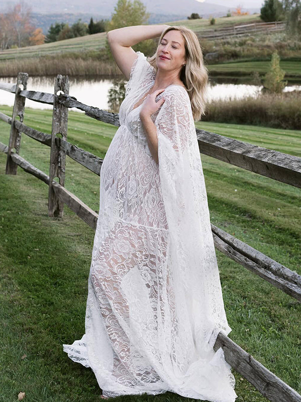Floral Lace Backless Boho Baby Shower Flare Sleeve Pregnant Maternity Photoshoot Maxi Dress Maternity