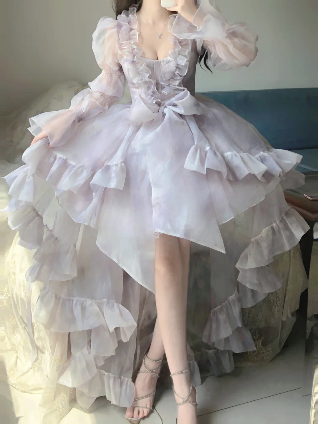 High Low V Neckline Floral Holiday Dress Birthday Dresses Birthday Outfits SD1304