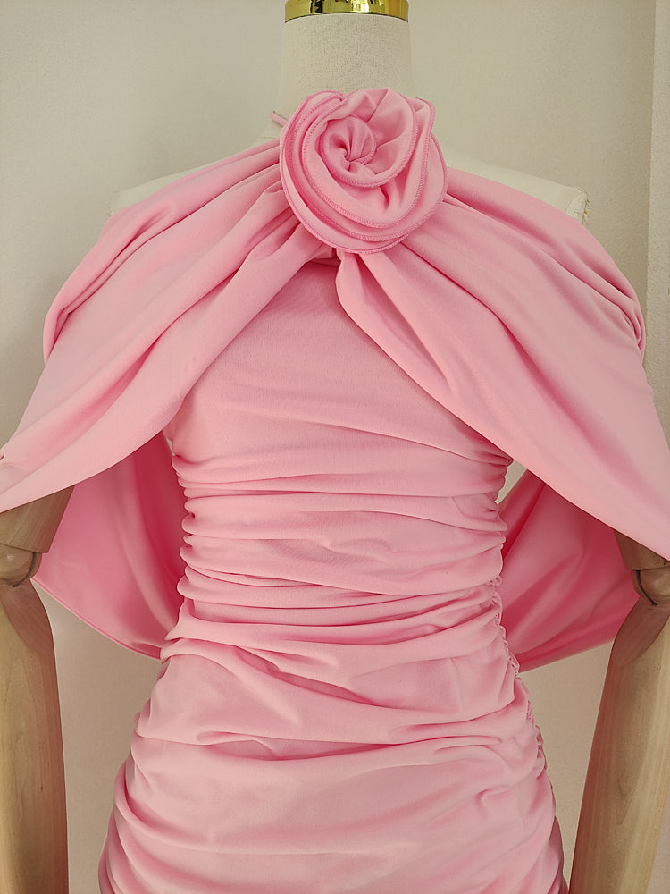 Sheath Halter Pink Floral Holiday Dress Travel Vacation Dresses Short Birthday Dress SD1251