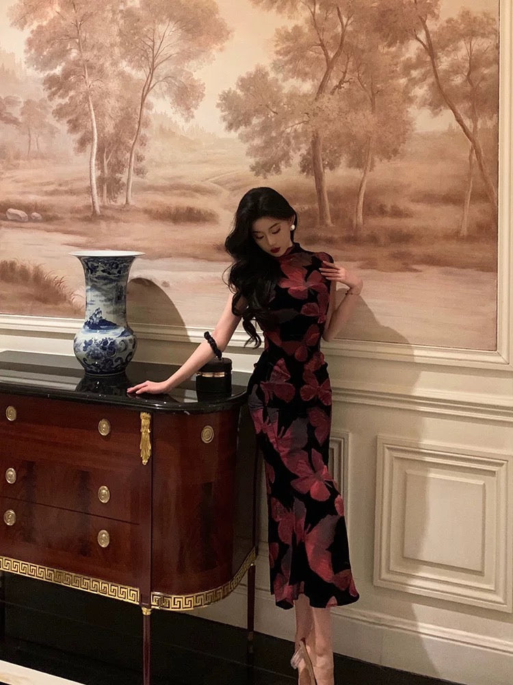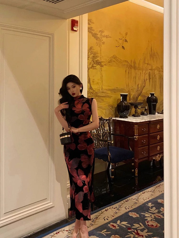 Sheath High Neckline Floral Date Night Dress Prom Dresses Party Dress Birthday Outfits SD821