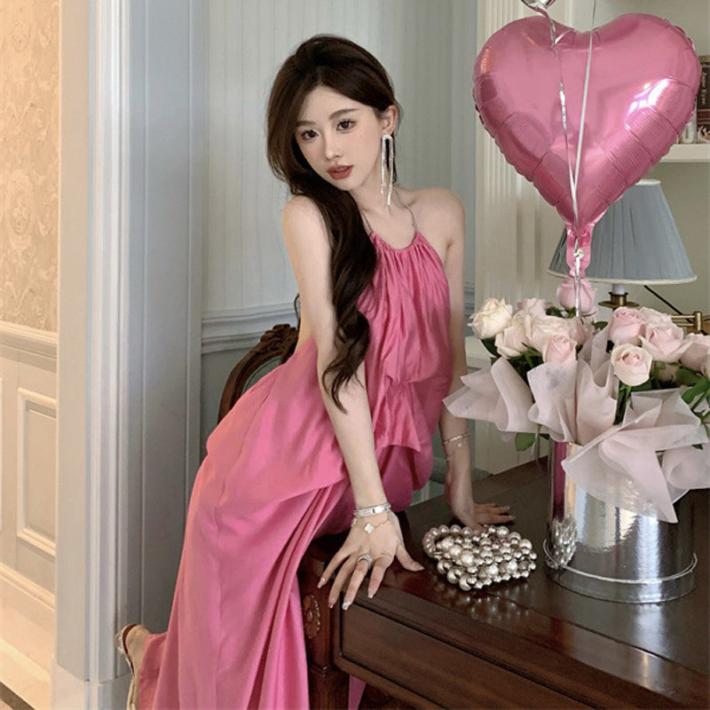 Bare Back Hanging Neck Sling Dress Women's Spring Summer Tea Break French Sexy Travel Holiday Dress