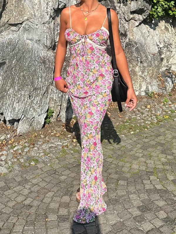 Broken Flower Holiday Sling Skirt Sexy Hottie Show Back Dress V Collar Body Hip Dress Summer HZ0628