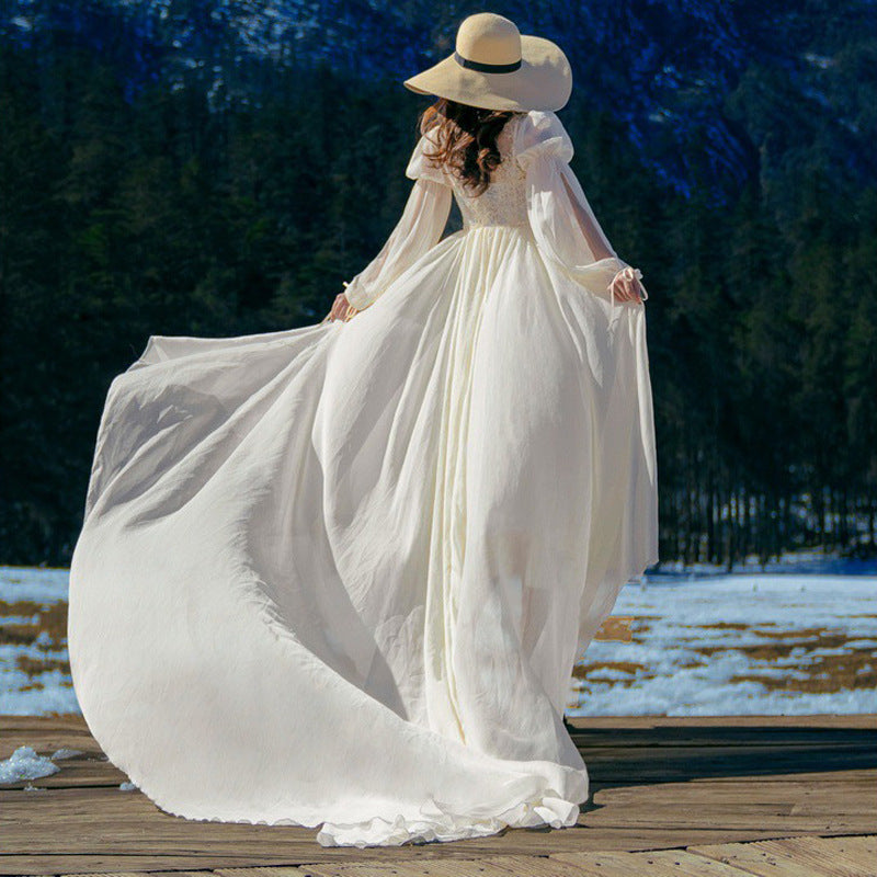 Seaside Holiday Dress Long Sleeves Sun-Drag Long Skirts Outside Wearing Shirt Beach Dress Morning Robes