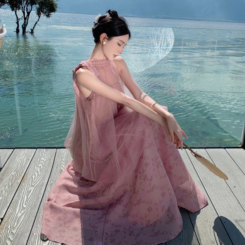 Yarn Hanging Neck Two Morning Robe Skirt Fairy Beach Dress Seaside Holiday Dress Girl
