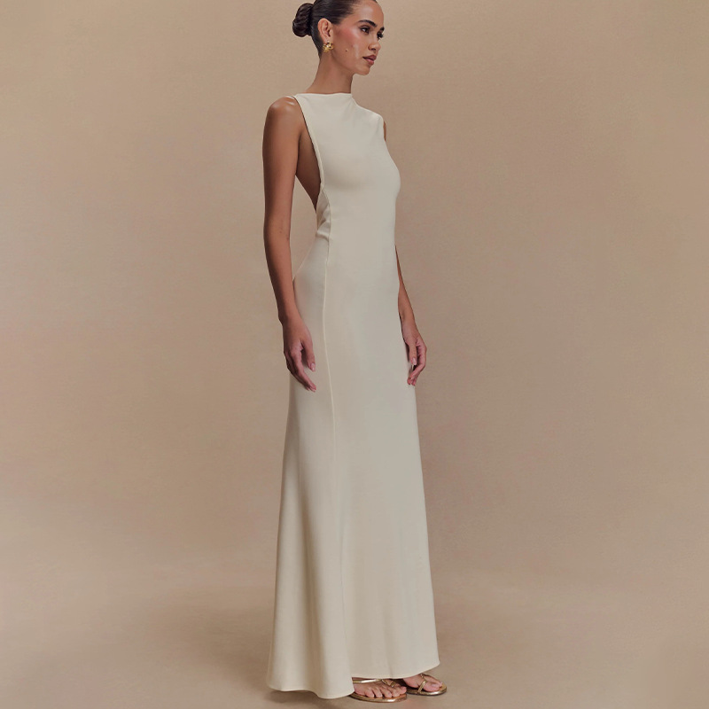 2025 New Solid-Color Sleeveless Roll-Free Backpack Hip Dress