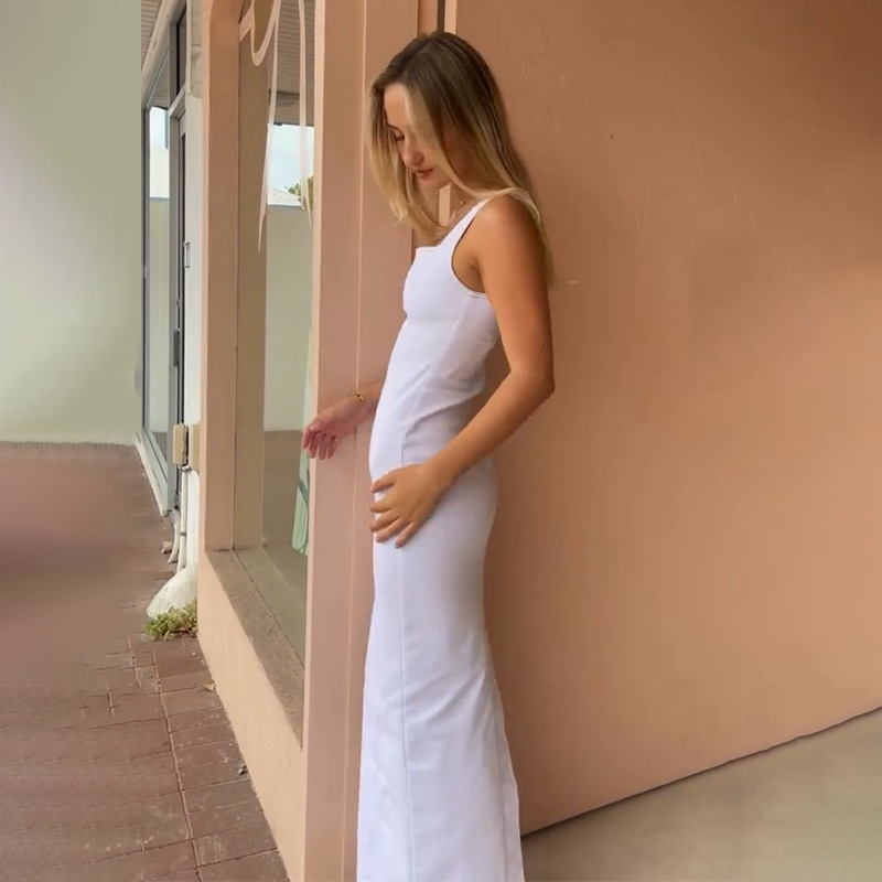 2025 New Solid Color Sleeveless Sling Square C-Necked Back Opening Dress