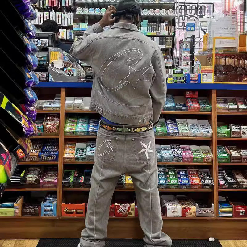 Alcatraz Jeans New Star Embroidered High Street Retro Old Casual Five-Point Pants DJPT