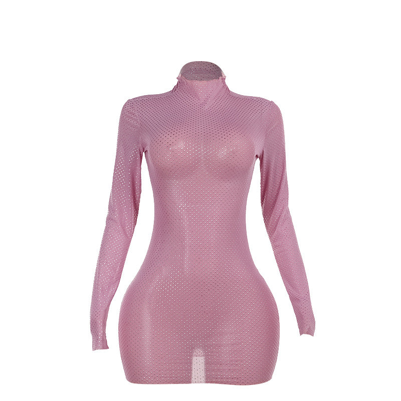 Autumn 2025 New Famous Temperament Dripping Half-High-Neck Mesh Dress Woman DJPT