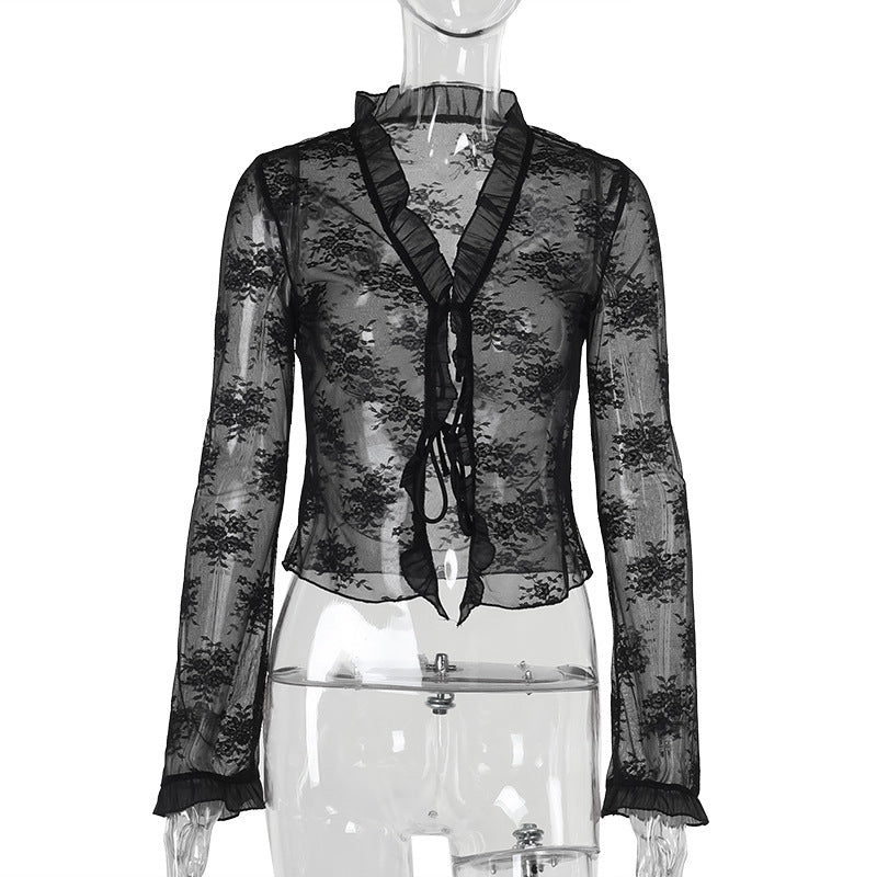 Autumn 2025 New Fashion Spice Girls Sexy Lace Tie Tie Shirt Girl DJPT