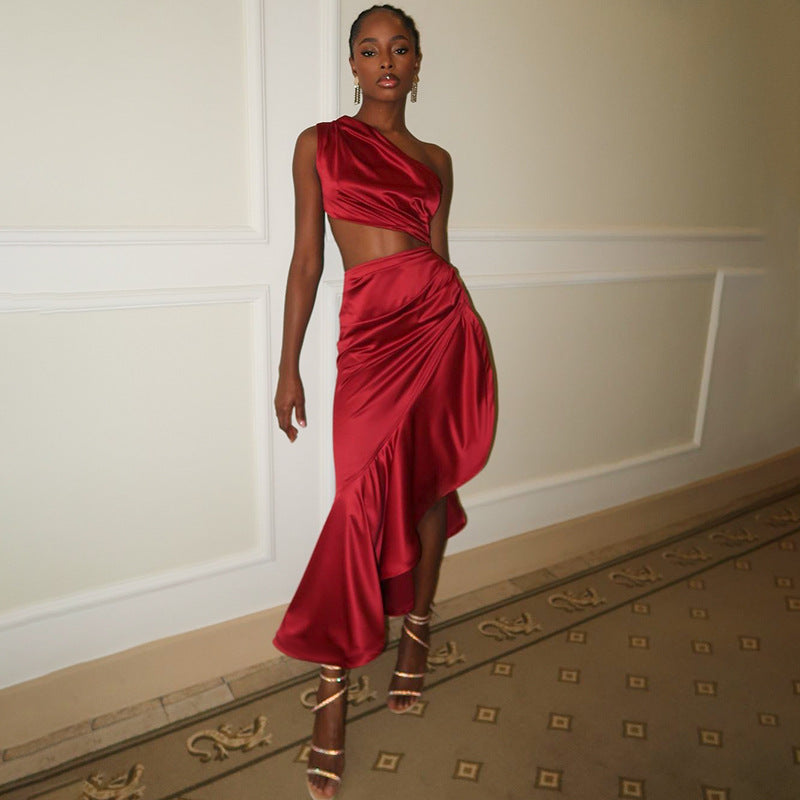 Autumn 2025 New Long Dress Famous Style Temperament Sexy Slant Shoulder Vest Dress Dress DJPT