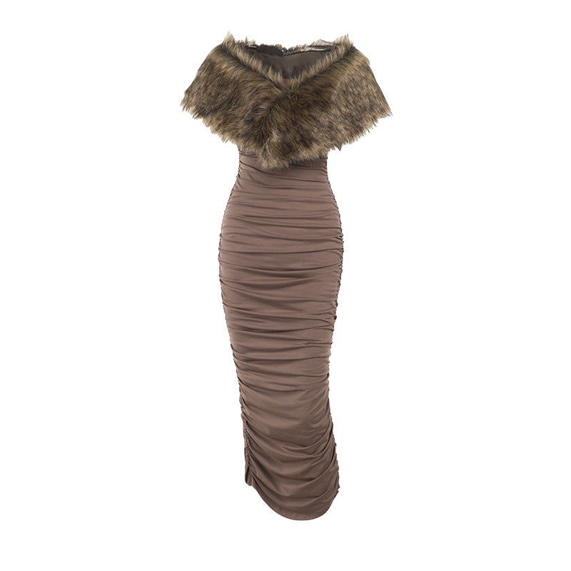 Autumn 2025 New Temperament Body-Body-Slender Shoulder-To-Heart Shawl Dress Woman DJPT