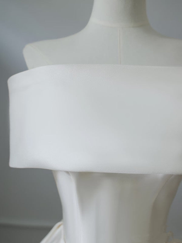 Ball Gown Strapless Ivory Satin Long Wedding Dresses Brides Dress S3805