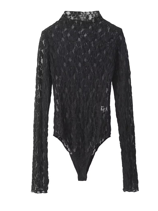 Black Lace Sheer 2-in-1 Long Sleeve Bodysuit Bodycon Photoshoot Maternity Jumpsuits Maternity