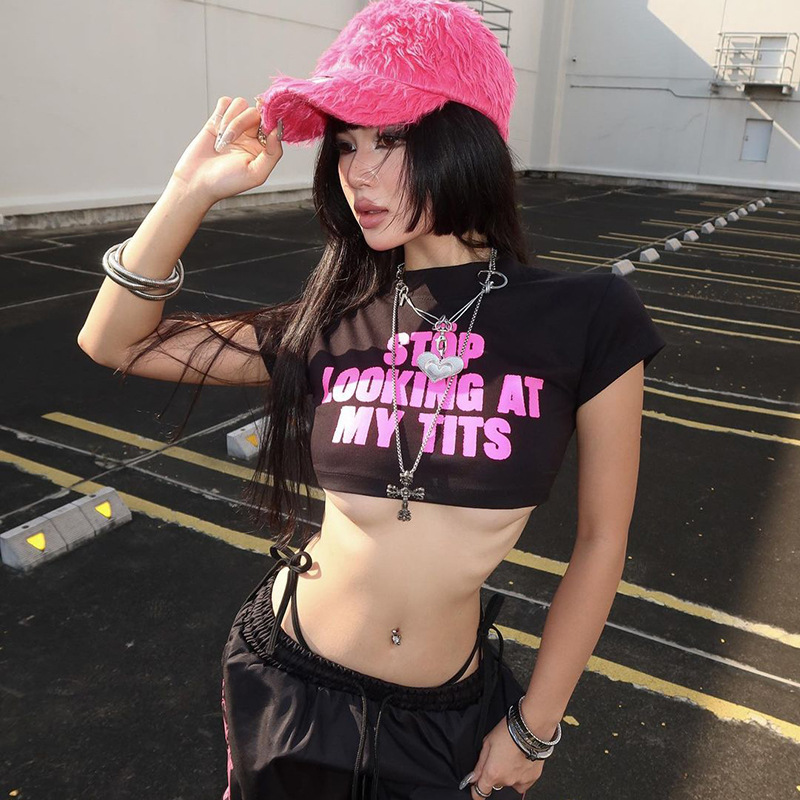 Casual Letter Print Ultra-Short Top Girl 2025 Summer Hot Girl Exposed Umbilical Repair T-Shirt DJPT