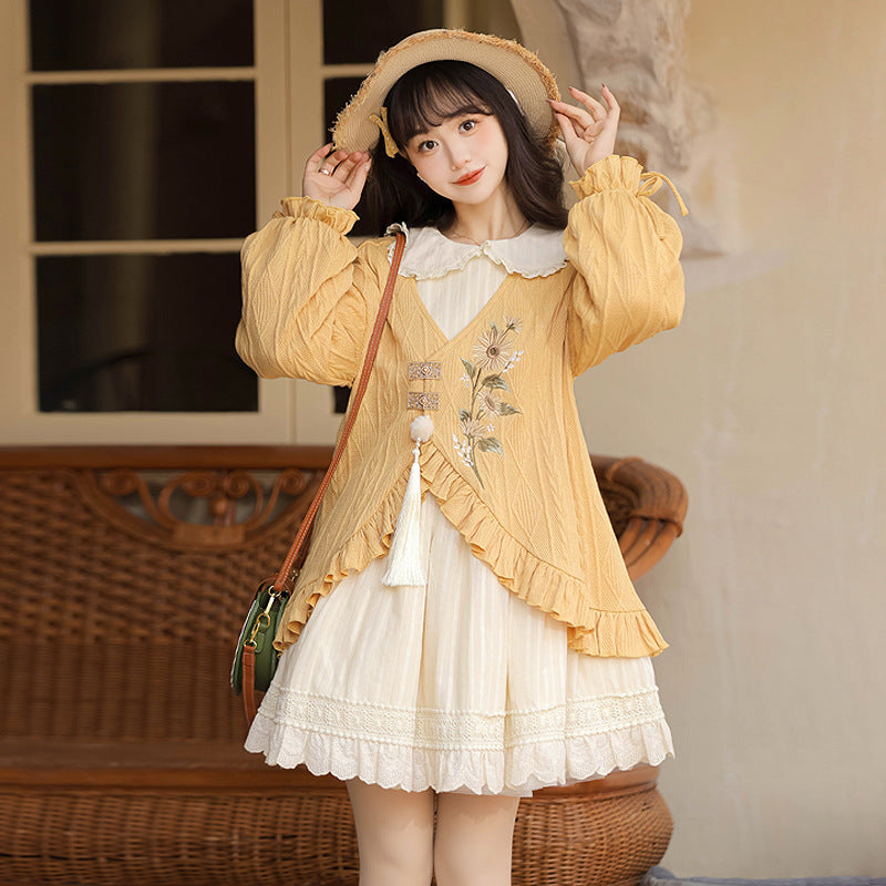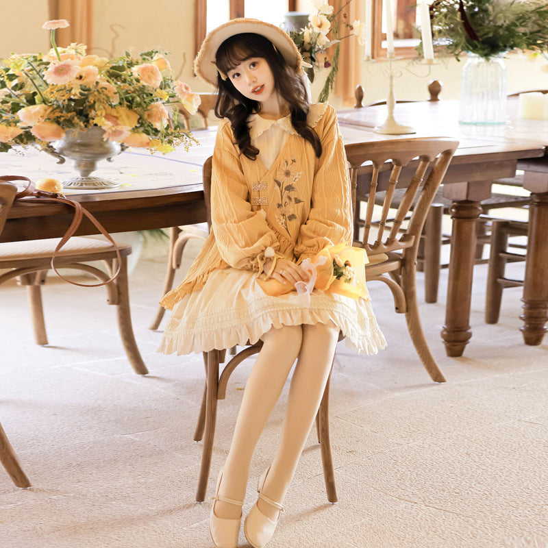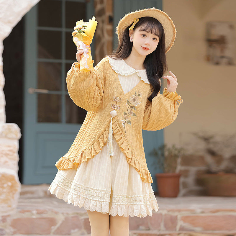 Design Sunflower Poetry Chinese Style Improve The Chinese Element Of Women's Coat Dress Set 7021