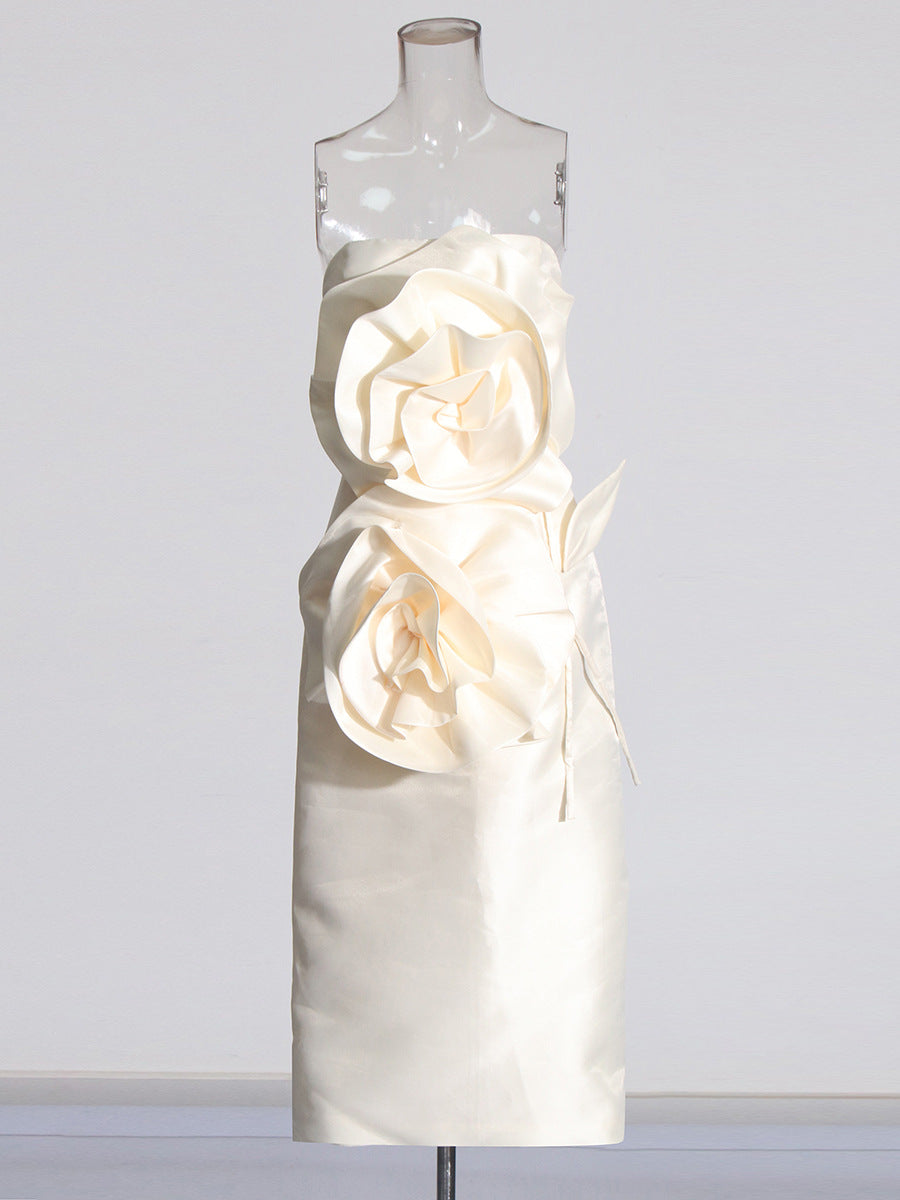 Dress Dress 2025 New Three-Dimensional Flower Open Fork Solid Color Repair Kite Summer Long Dress