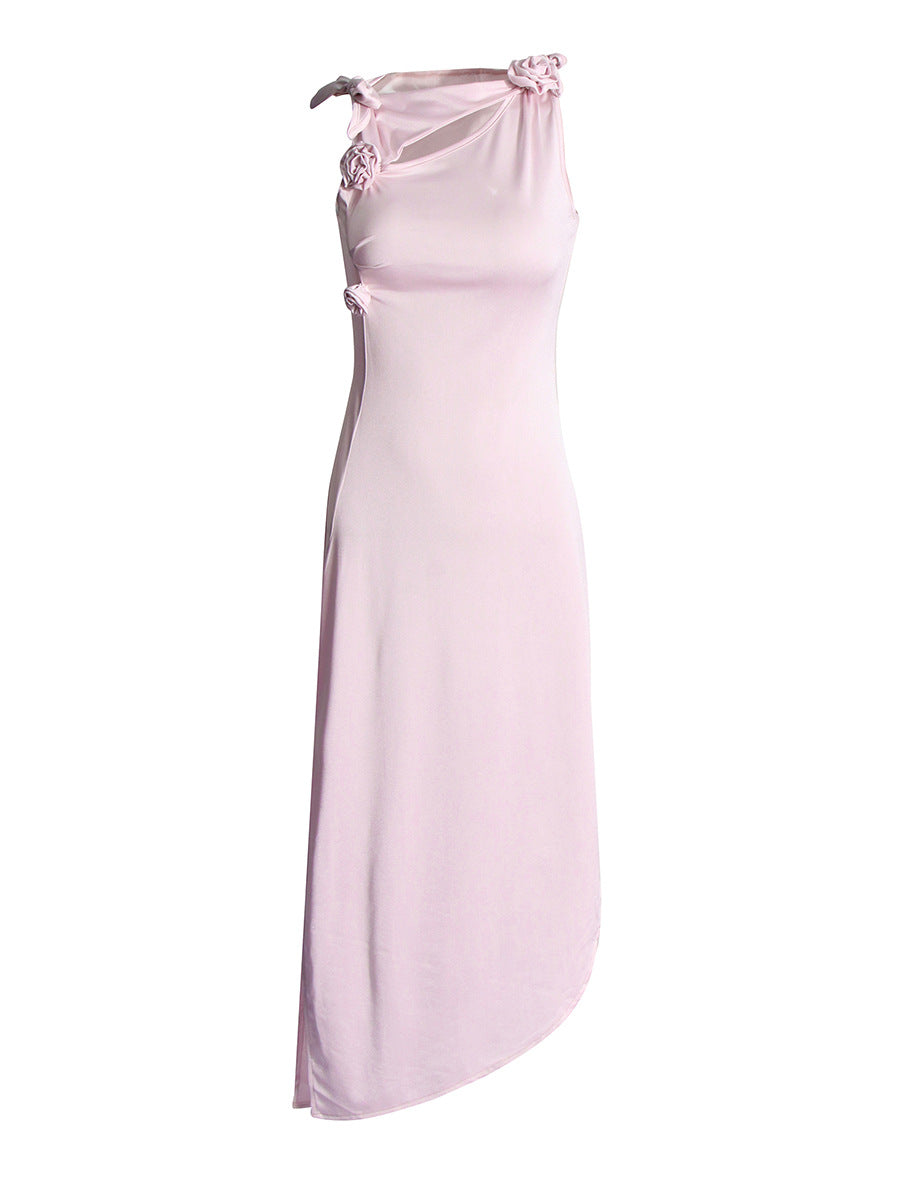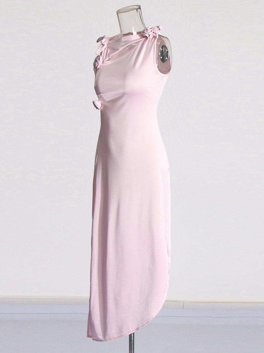 Dress Women's Dress Spring 2025 New Pink Sleeveless Bow Splicing Body Repair Long Dress
