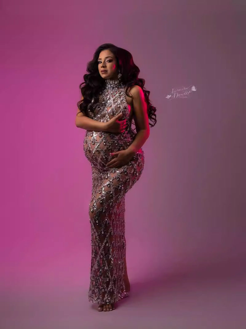 Drilled Pregnant Woman Photo Dress Shiny Big Diamond Glitter View Mesh Pregnant Woman Photography Dress Maternity