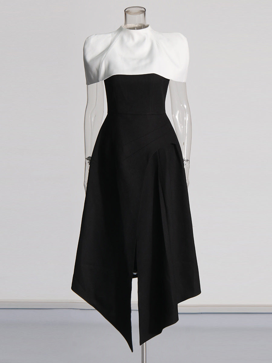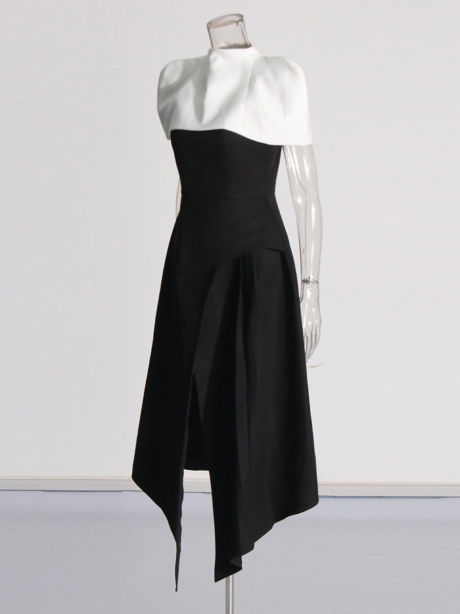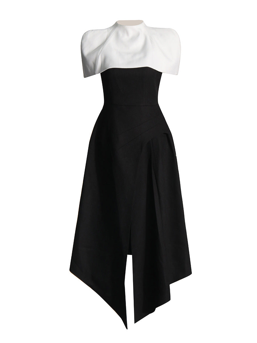 Elegance Elegance Wind 2025 Summer New Black And White Colliderable Cloaked Fork Dress Woman