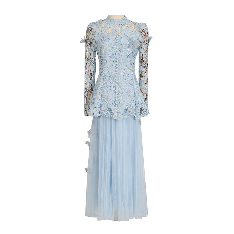 Famous Wind 2025 New Heavy Industry Embroidered Water-Soluble Flower Single Buckle Top + Folded Skirt Dress Suit Woman