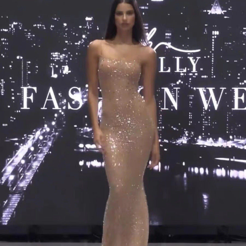 Feeling Nude Shiny Piece Hanging Dress High-End Light Luxury Niche Banquet Birthday Sexy Dress Dress Dress HZ0628