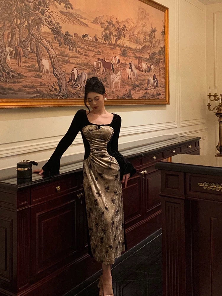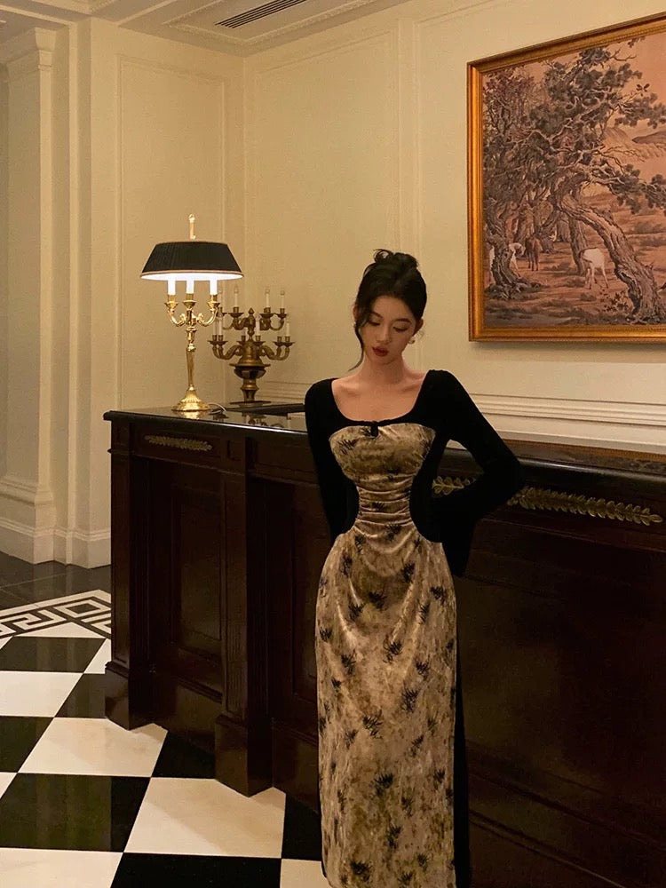 French A Line Square Neckline Velvet Black Prom Dresses Birthday Outfits Evening Gown SD1050