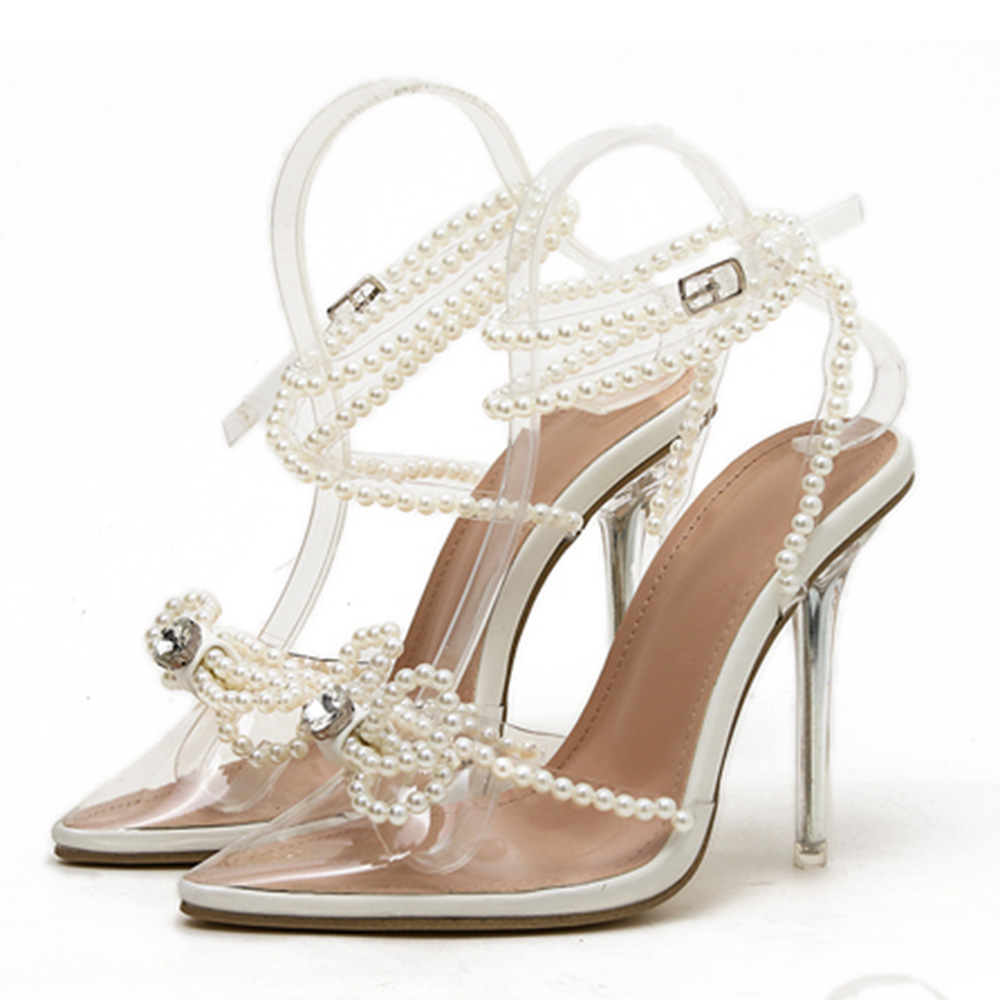 High Heels 2025 Spring Tip Sweet Bow Summer Water Drill Transparent Women's Pearl Sandals High Quality Shoes