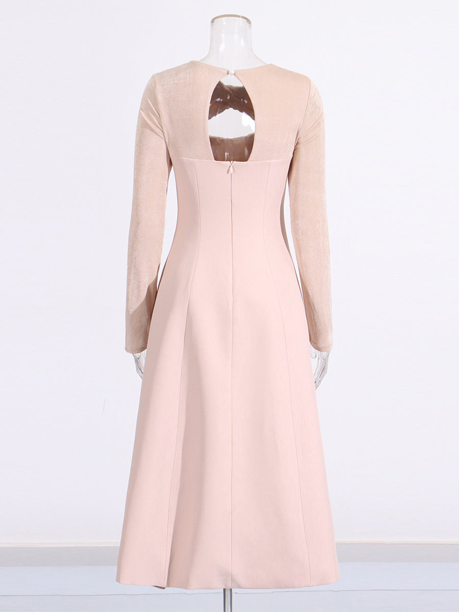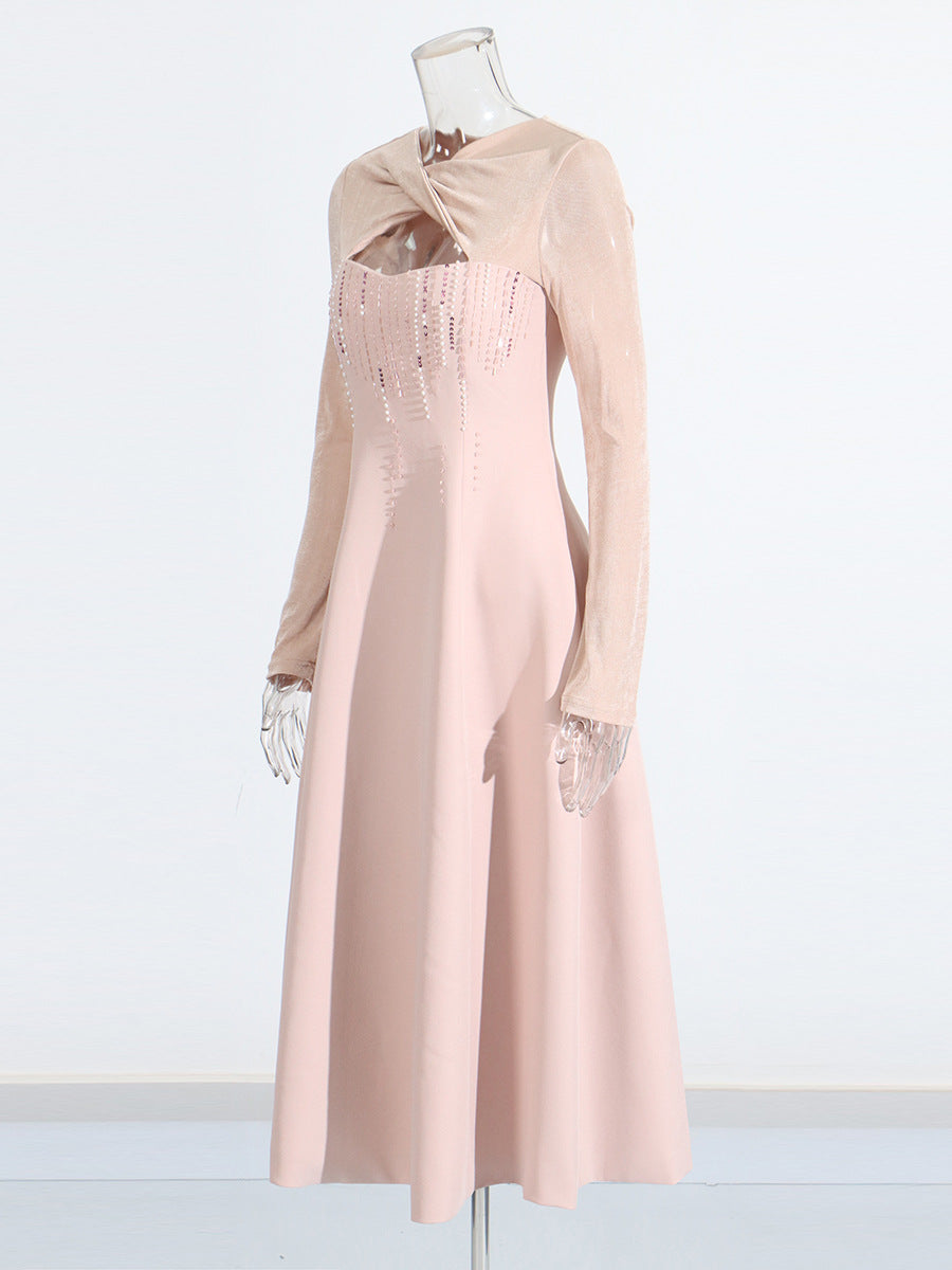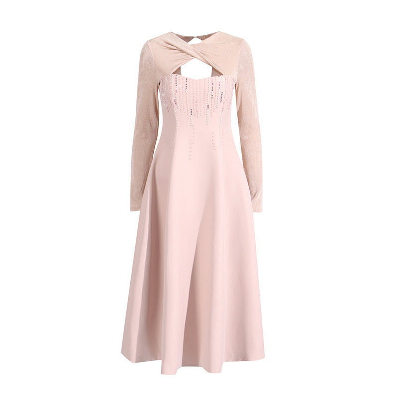 Industry Famous Diamond Hollow Dress Mid-Long Dress 2025 New Cross-Neck Design Waist Dress Dress Women's Summer