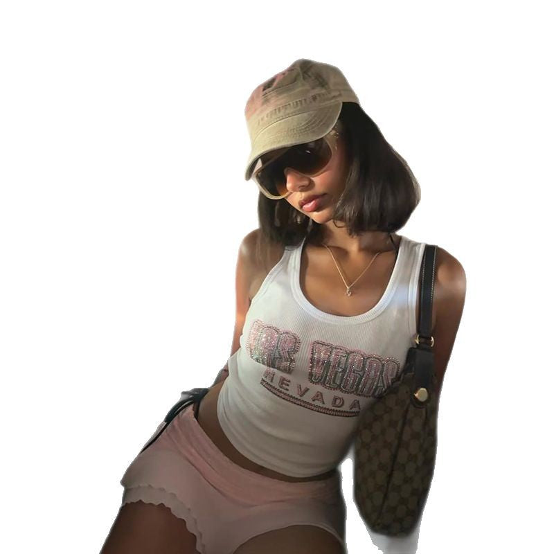 Knitted Letter Print Repair Short Vest 2025 Summer Fashion Hottie T-Shirt Girl DJPT
