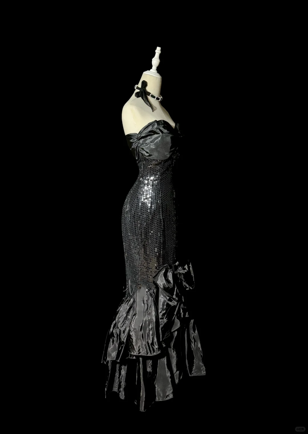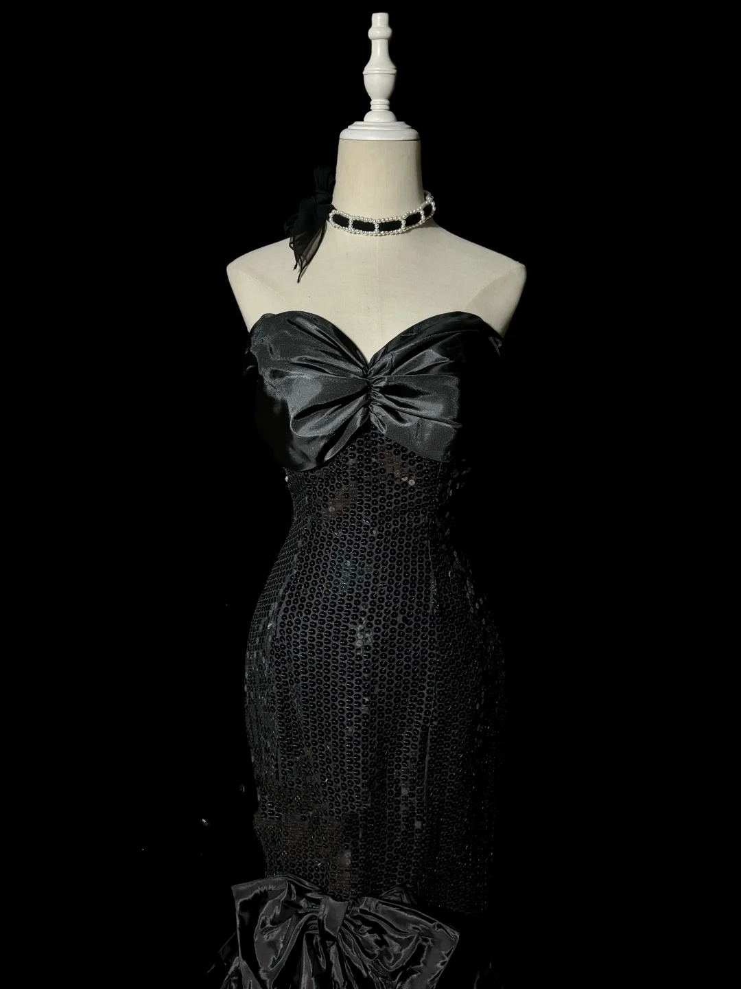 Mermaid Sweetheart Black Sequin Long Prom Gown Fairy Prom Dresses SD2961