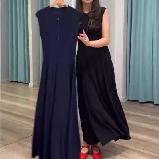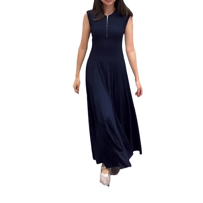New 2024 Light Wind Style Waist Temperament Retro Comfortable Sleeveless Long Skirt