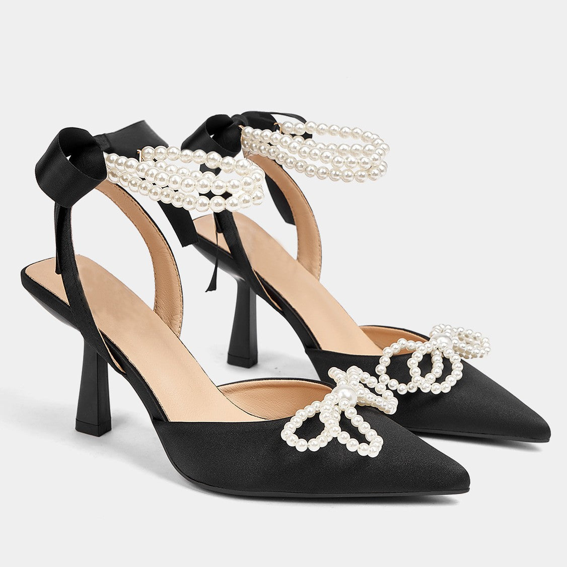 New Pearl Bow Lady High Heel Single Shoes Fashion Banquet Black High Heel Single Shoes Outside Single Shoes High Quality Shoes