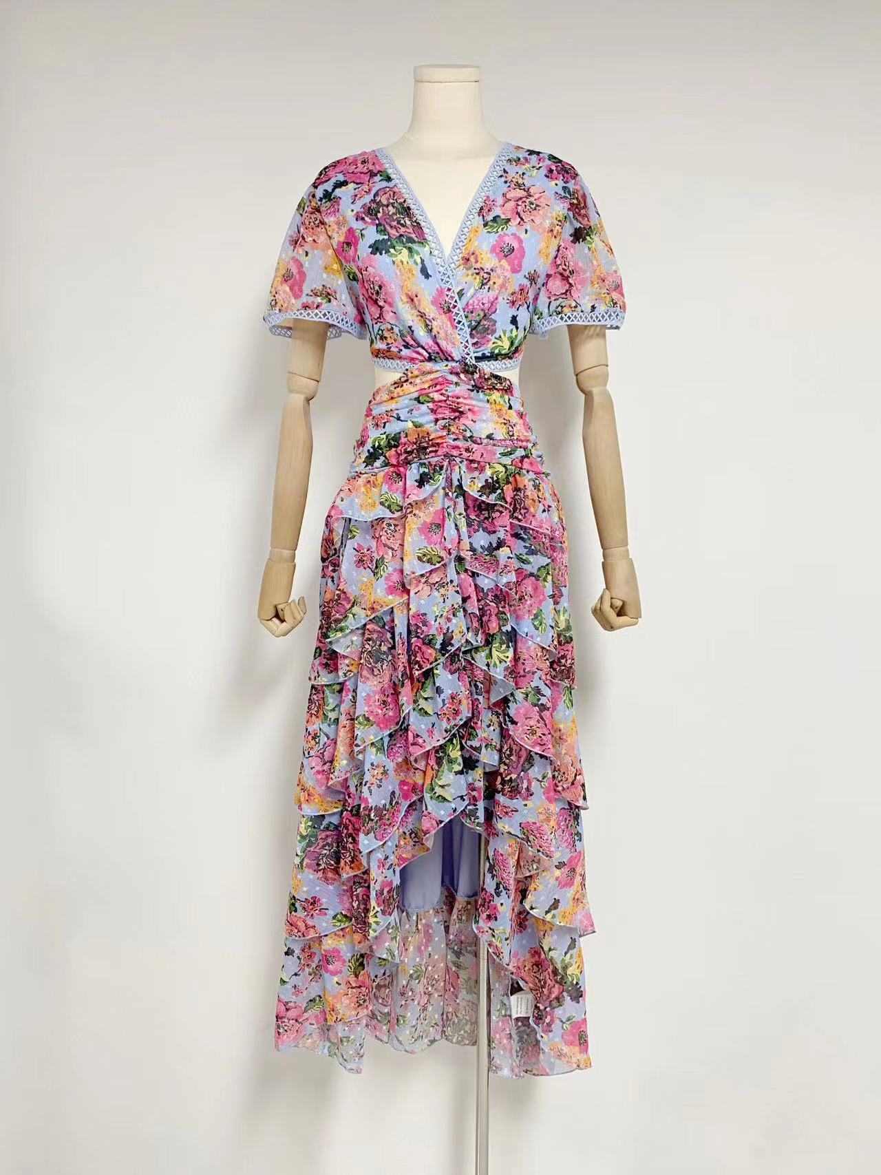Niche 2025 Spring And Autumn V-Necked Lotus Leaf Side Splicing Skirt Sexy Loaf Long Dress Woman