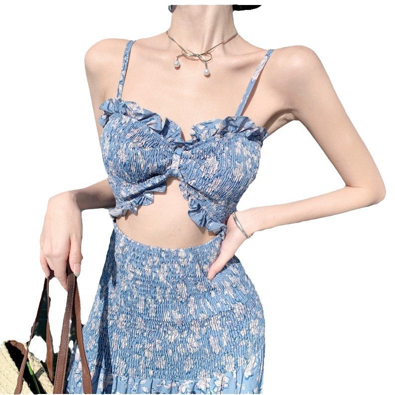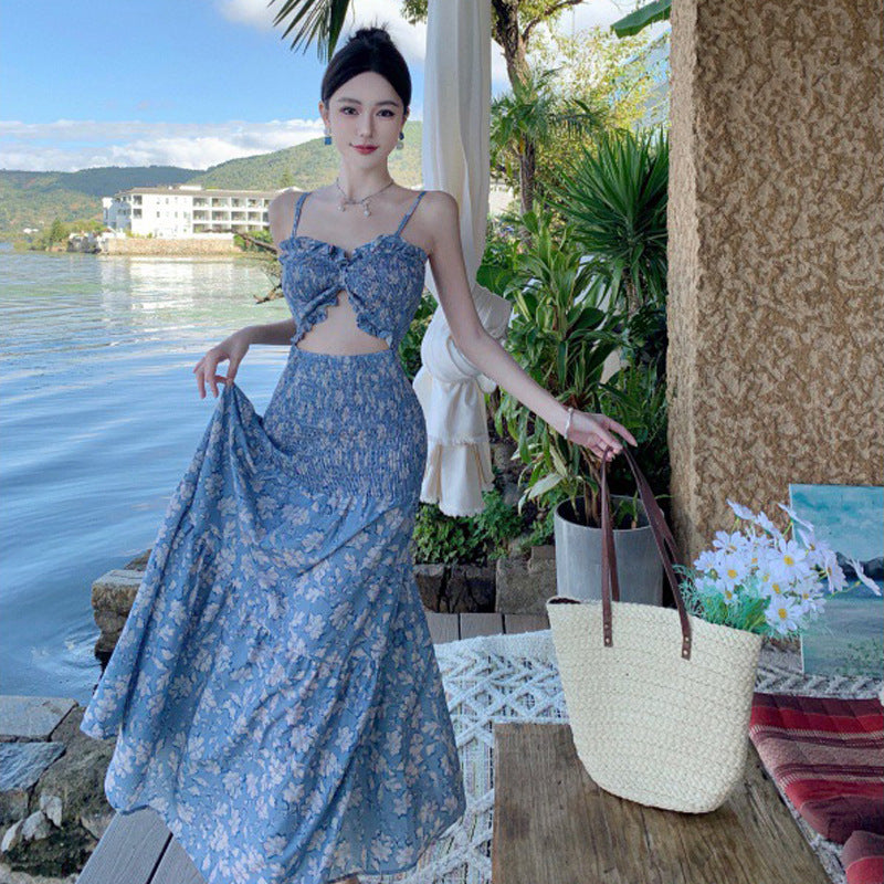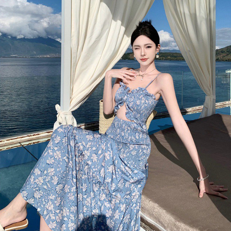 Seaside Resort Beach Dress Hollow Broken Flower Hanging Dress Women's Summer High Dress