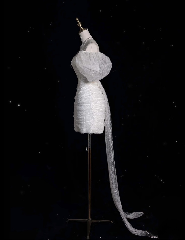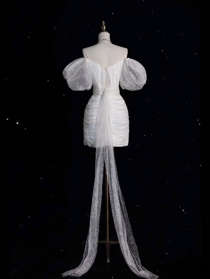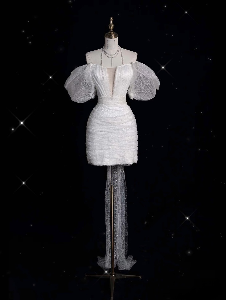 Sheath Off The Shoulder Sequin Short Sleeves White Wedding Dresses Brides Dress SD1939