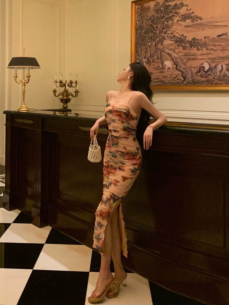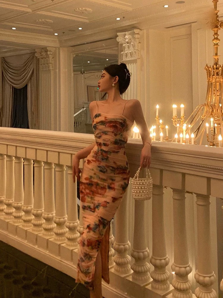 Sheath Spaghetti Straps Floral Prom Dresses Birthday Outfits Evening Gown SD983