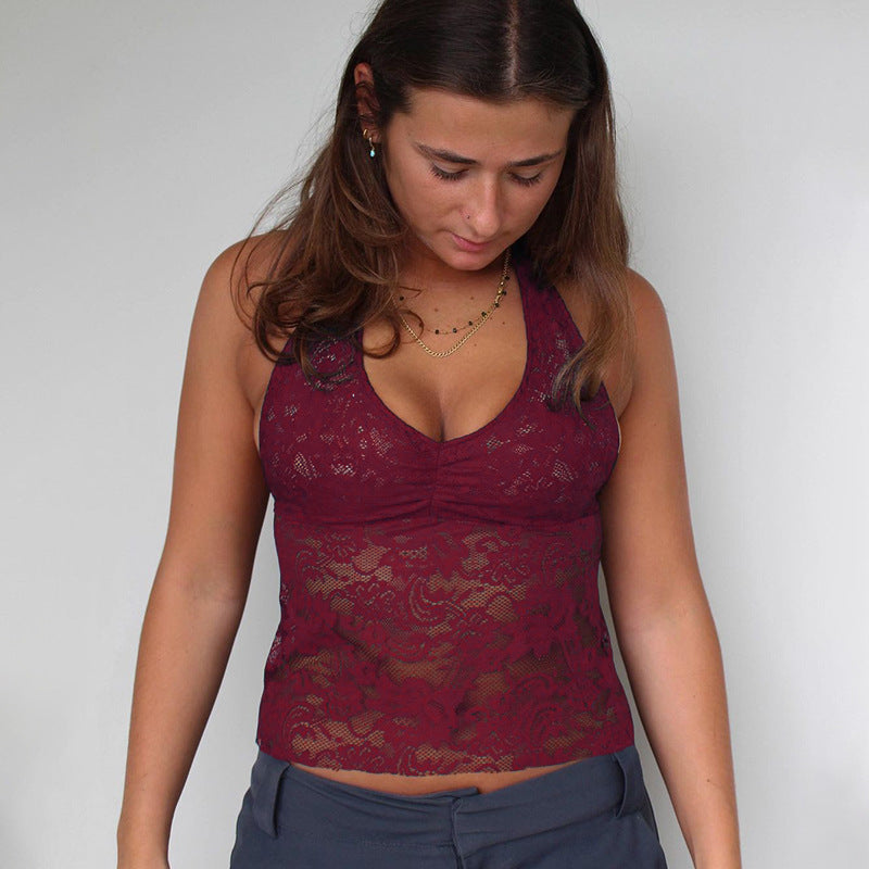 Sling Lace Hanging Neck Short Top 2025 Summer New Hot Girl Sexy Vest Woman DJPT