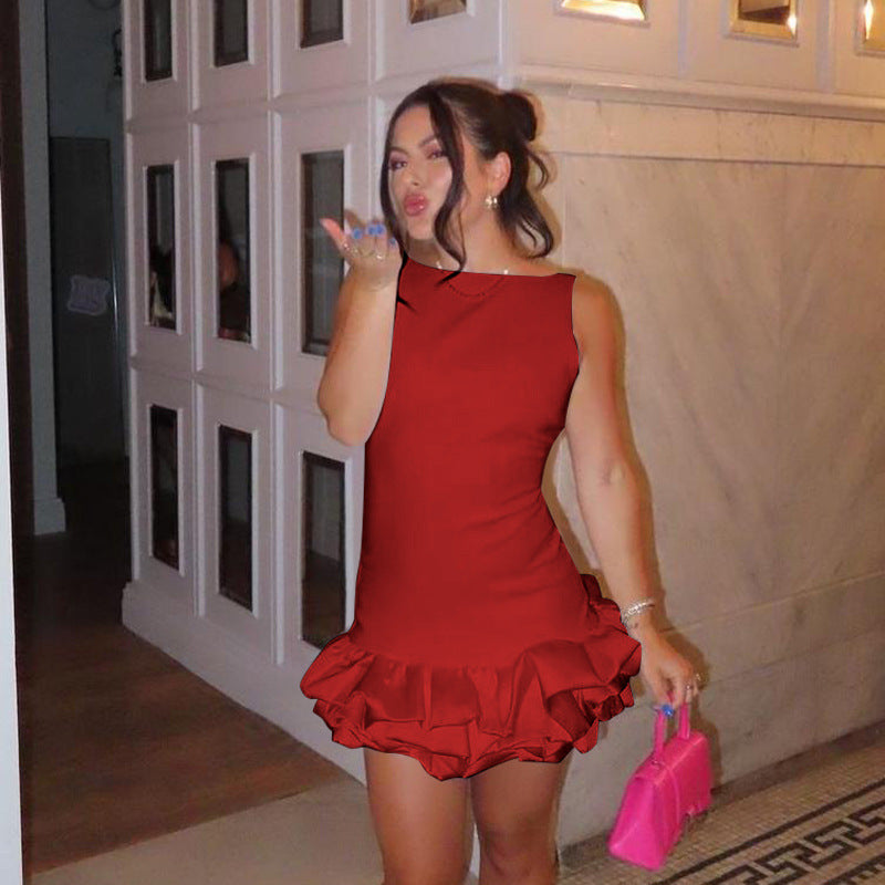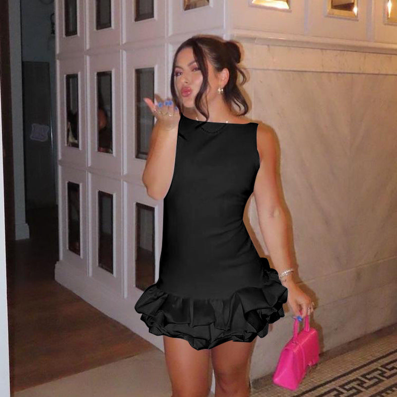 Spring 2025 New Short Skirt Famous Style Temperament Sexy Body Bubble Hem Waist Vest Mini Skirt DJPT