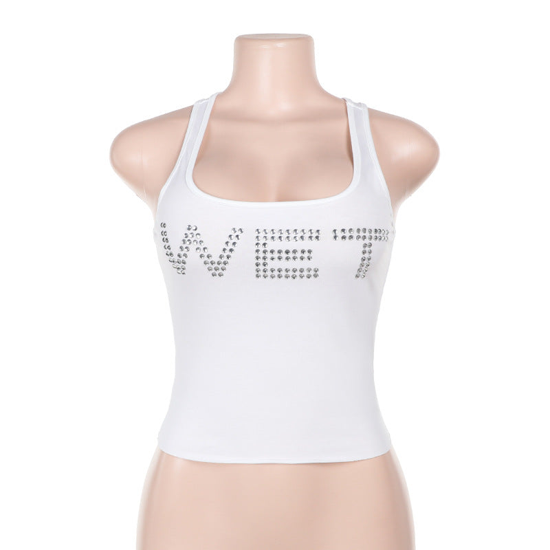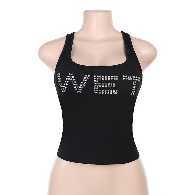 Summer 2025 New Women's Clothing Street Hot Girl Sexy Diamond Diamond Vest Top Girl DJPT