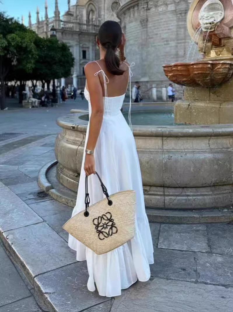 Summer New Fashion Stacked Solid Color Sexy Sling Dress