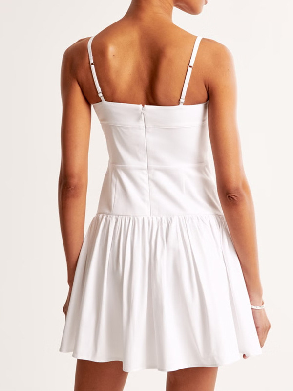 Summer New Fashion Waist Solid Color Pressure Fold Solid Color Sling Dress