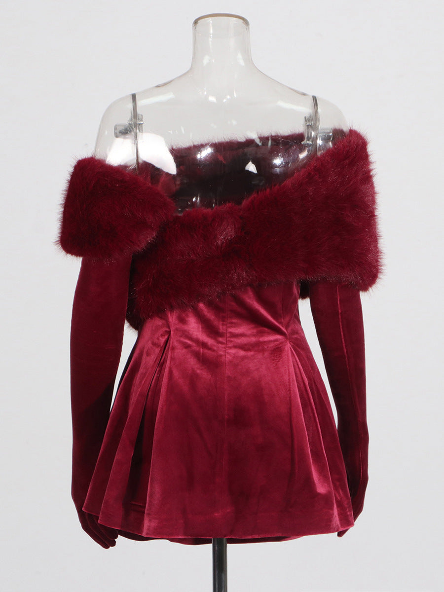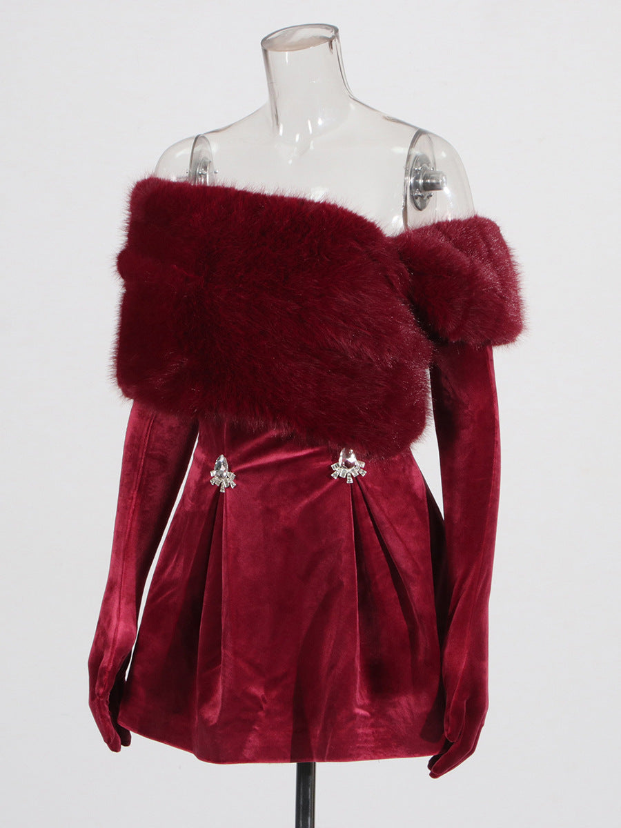 Temperament Elegant Style Velvet Skirt 2025 Summer New Bra Wearing More French Wool Design Dress Dress Woman