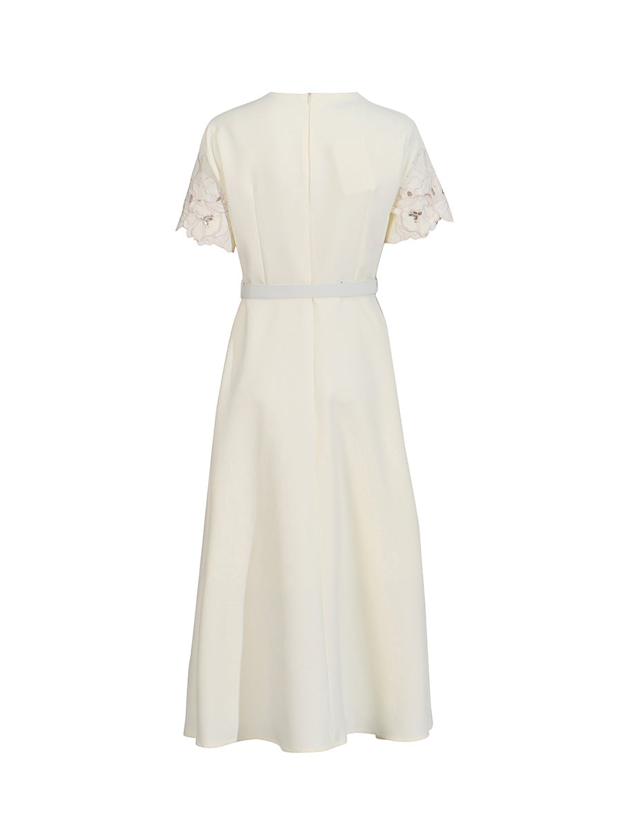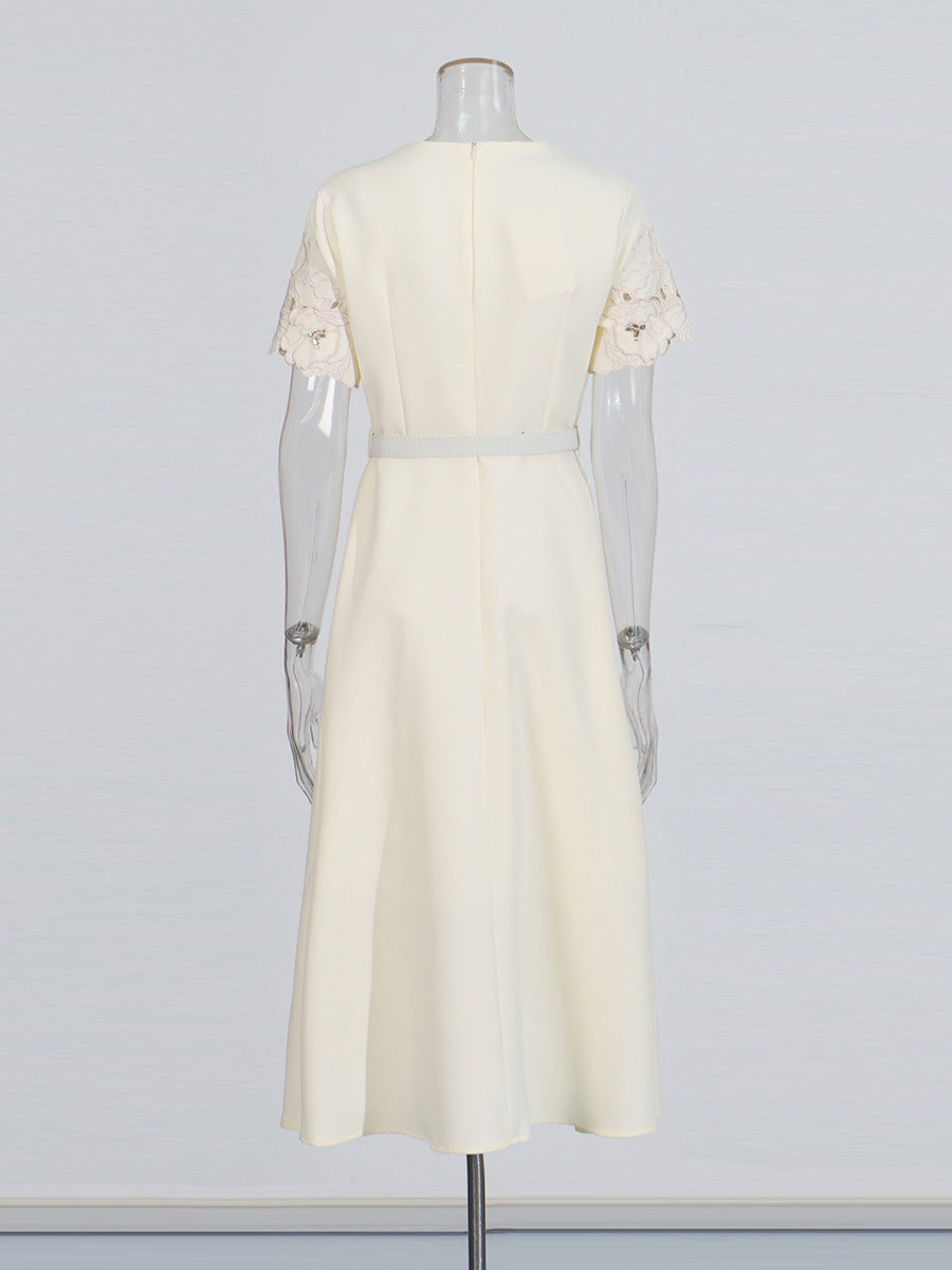 Temperament Famous Style Dress 2025 Summer New Nail Drill Three-Dimensional Flowers Hollow Waist Thin Dress