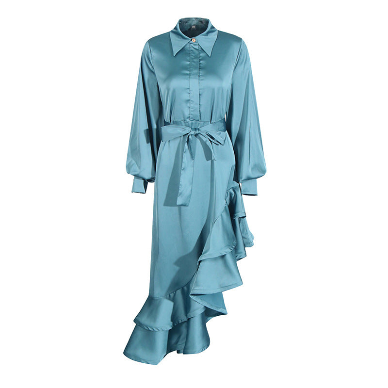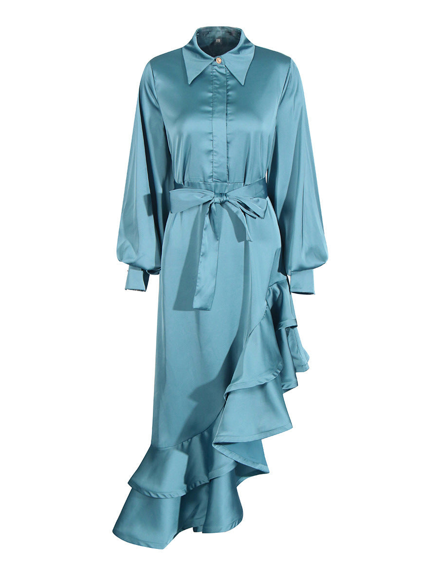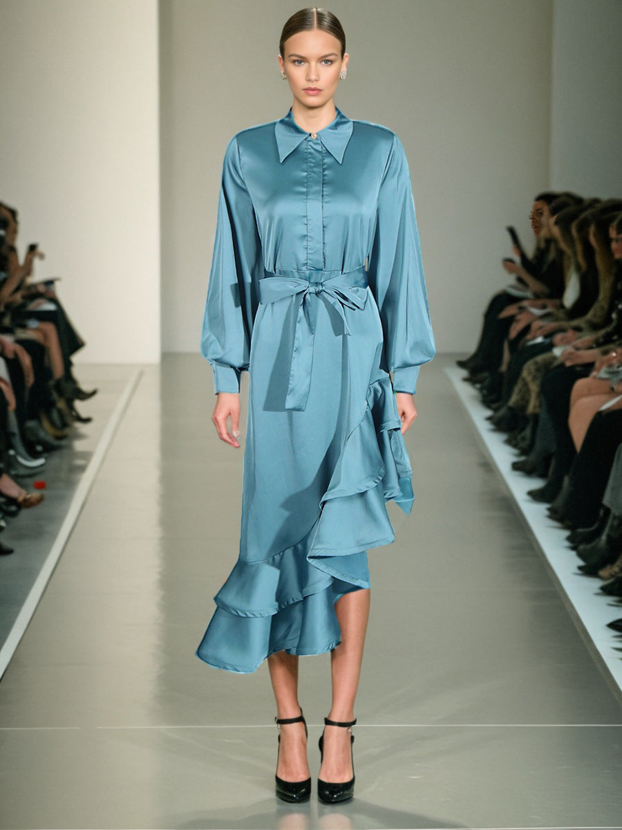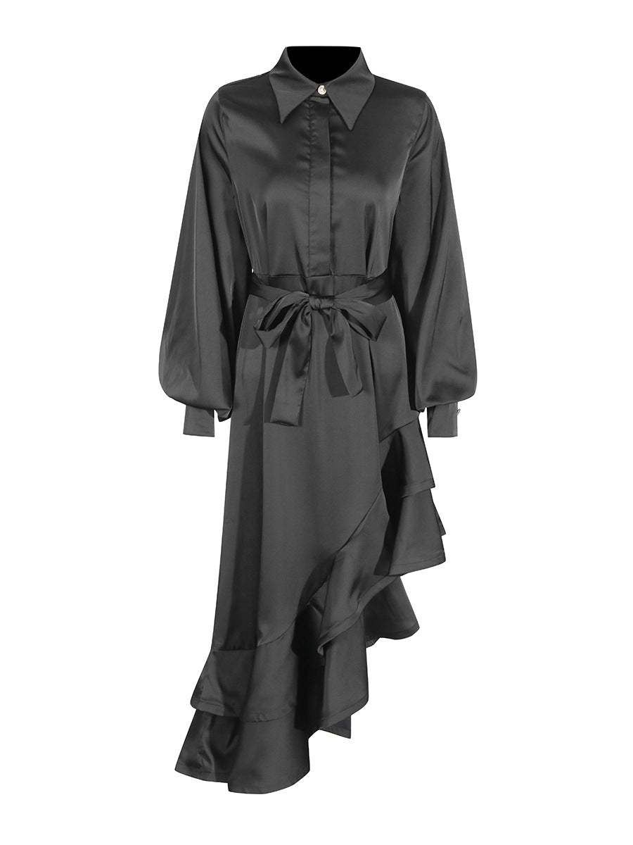 Temperament Fashion Court Style 2025 New Collar Single-D Row Buckle Bubble Sleeve Irregularly Spliced With Dress Woman