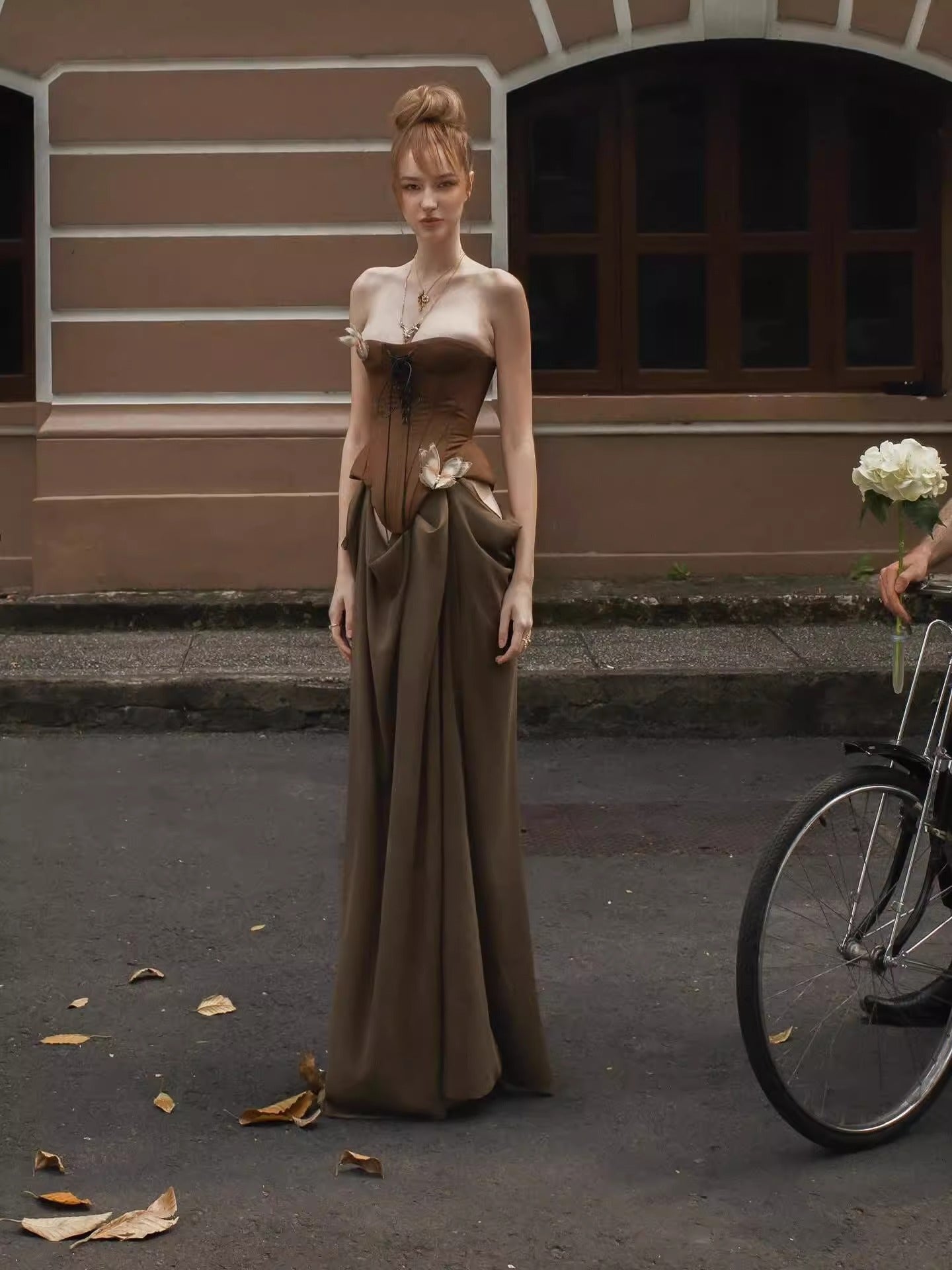 Thoracic Fish Bone Dress Tied With Waste Soil Breeze Niche Design Thin Temperament Dress Dress HZ0628