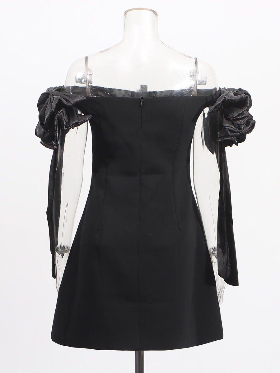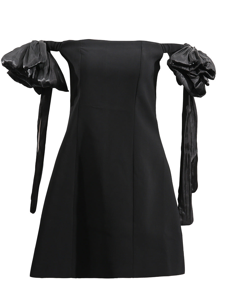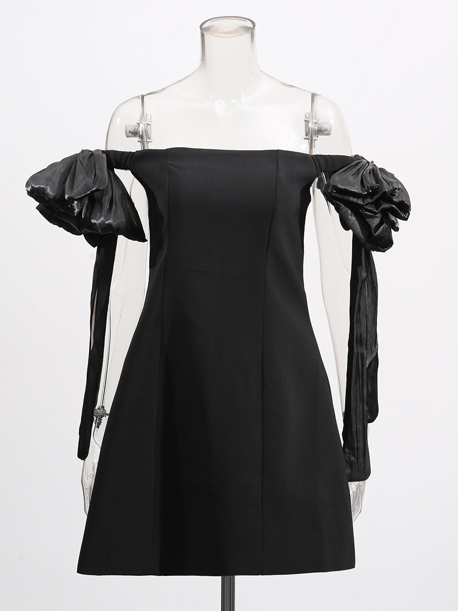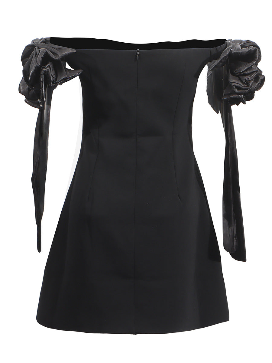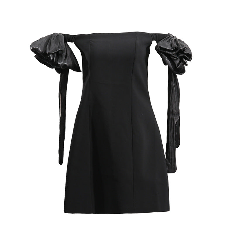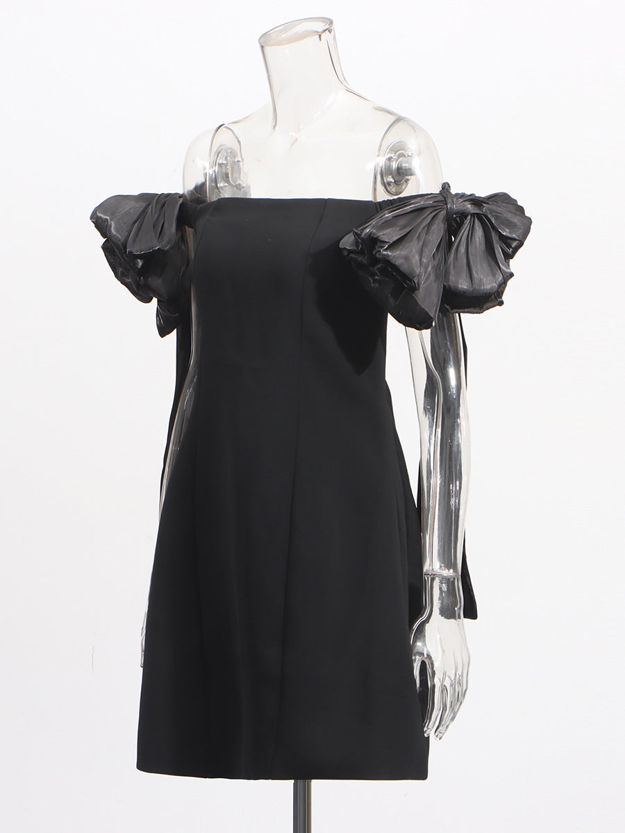 Wind Ribbon Skirt 2025 Summer New Word Shoulder Bow Splicing Bare Back High-End Feel Dress