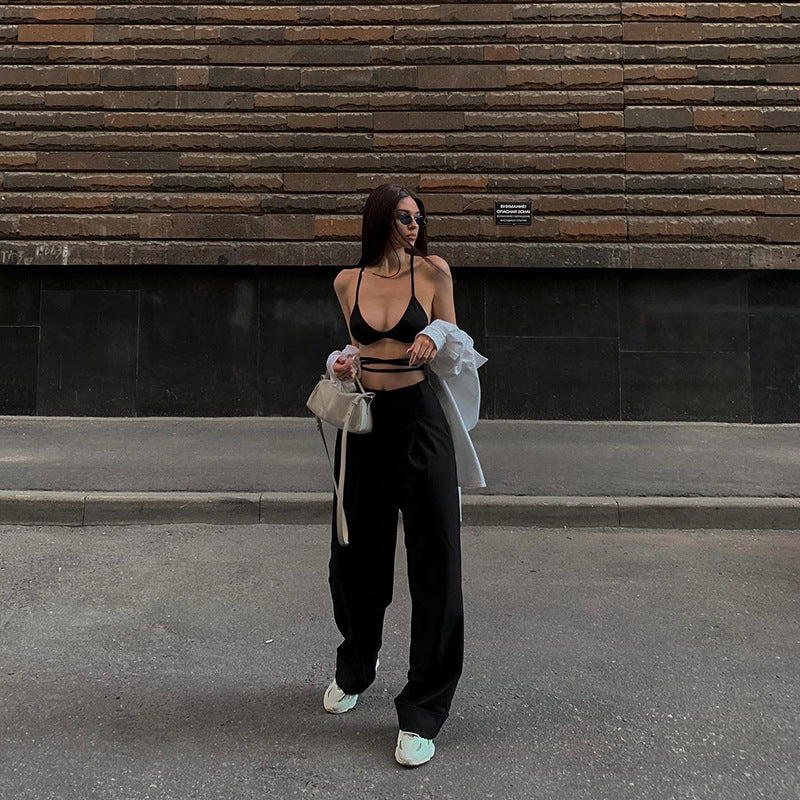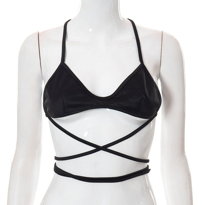Women's Clothing 2025 Spring And Summer New Net Color Hanging Neck Strap Bare Back Short Hottie Vest DJPT